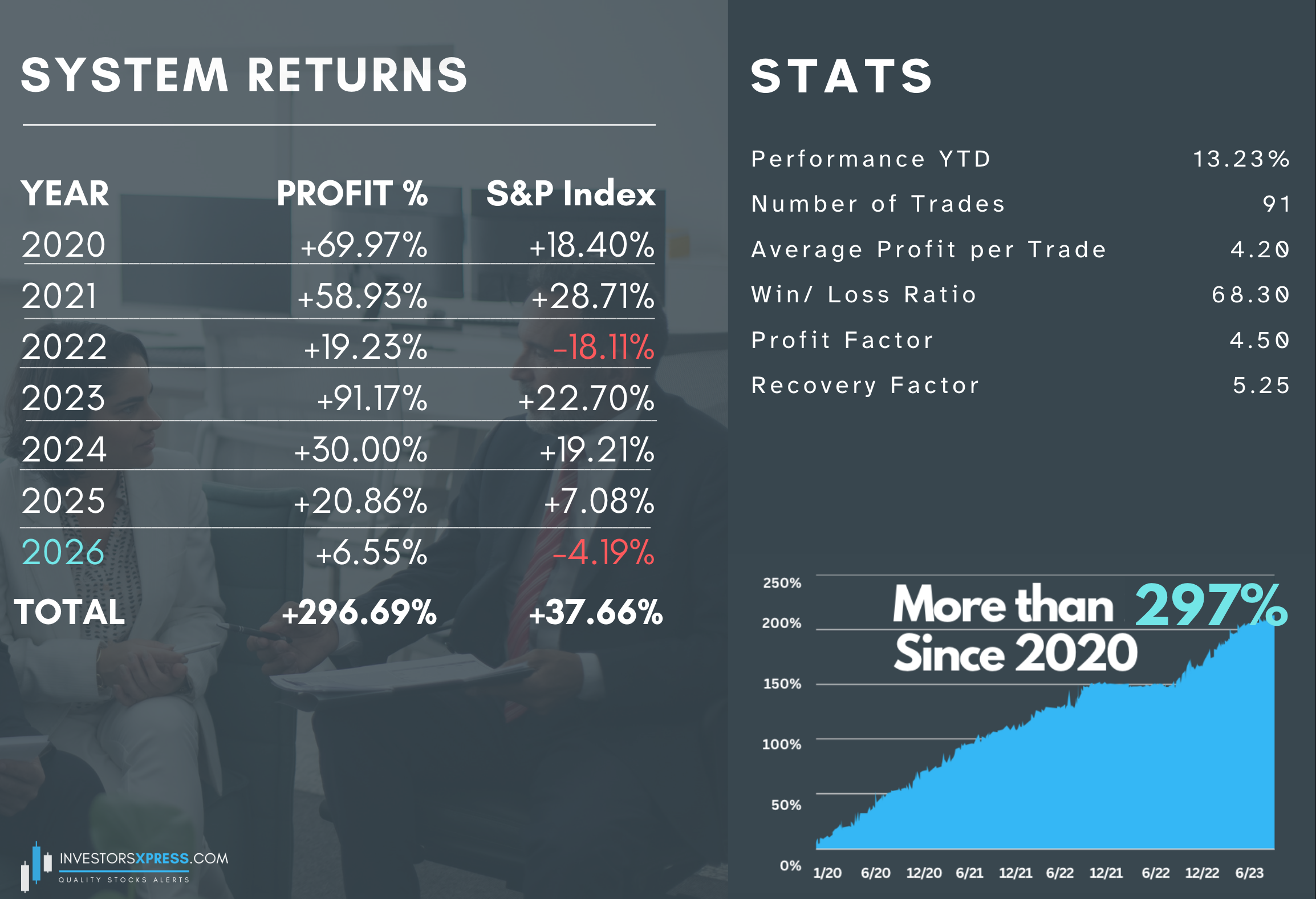 We have developed a stock trading system with high returns over investment and very easy to follow. It combines technical analysis with objective and positive news about the stock in question, which makes the system 100% mechanical.